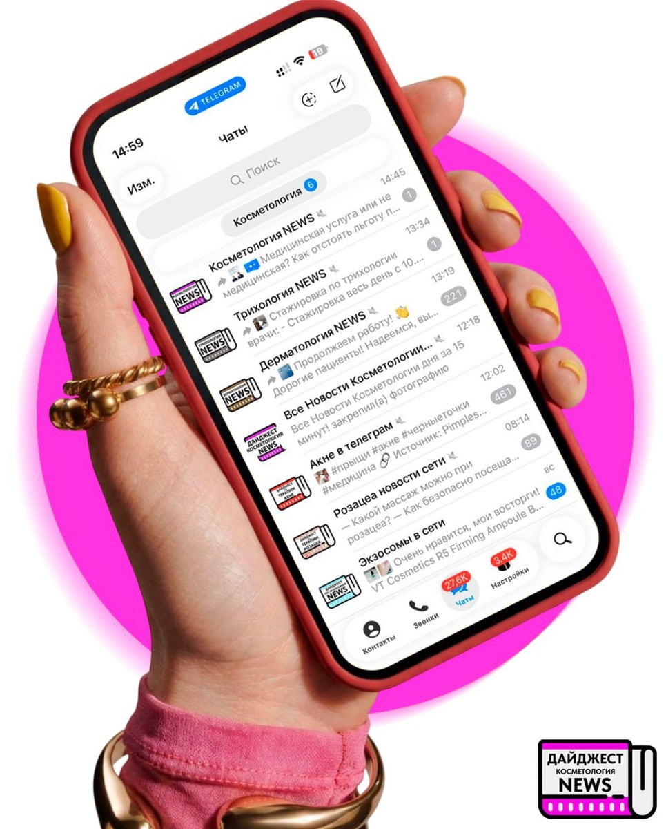 ! Список интересных ТГ каналов для косметологов, в которых можно найти темы для обсуждения с пациентами, коллегами и клиентами: 🧬 Новости Косметологии — освежающая бегущая строка лента репостов бьюти авторов. 🗞 Дайджест Новостей — каждый божий день пост с выжимкой самого интересного среди тысячи бьюти-новостей. 🧴 Кремология — канал про косметику от базы до профки. 🧑⚕️ Дерматология NEWS — тут авторы хранят свежие новости по дерматологии из РФ и зарубежа. 💇♀️ Трихология NEWS — ищите посты для профи о лечении, препаратах и уходе за кожей головы. 🤍 Акне NEWS — канал про все о проблемной коже. 🧪 Экзосомы NEWS — в канале тщательно отобранные фото посты про экзосомы, стволовые клетки и регенеративную медицину. 🌸 Розацеа NEWS — склад статей и исследований по лечению розацеа и купероза. А какие сообщества в ТГ читаете Вы? Не напишите в комментарий ⭕️