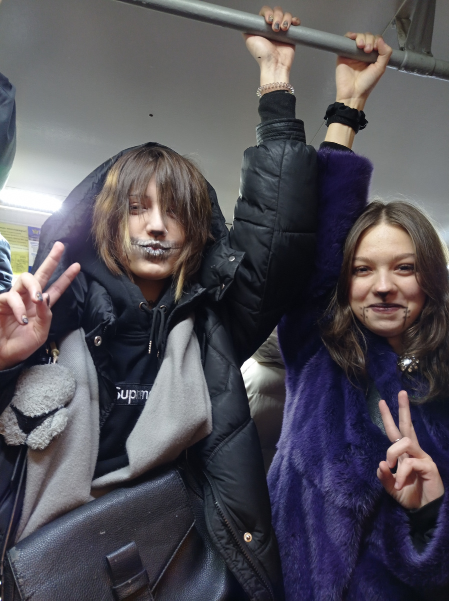 "КАЖДЫЙ ПРАВ, КТО СВОЕ НЕБО ПОДОГНАЛ ПО СЕБЕ. ПО ЗЕМЛЕ ГУЛЯЕТ ВЕТЕР, КАЖДЫЙ ЛОВИТ СВОЙ КАЙФ." Александра Борисова. Девчушки, пока молоденькие, играют в хиппи. Зашла в полнехонький трамвай. Слышу кричат: " Бабушка идите сюда". Легко сказать: "Идите"..., Пришлось продираться. Возле свободного места стояли две девчонки. Сев, я подняла голову, чтобы уступившим сказать спасибо. Увидела разукрашенные веселые девичьи лица. Я девочек поблагодарила и с улыбкой выяснила, куда они такие красивые навострились. А поехали они на встречу с друзьями похипповать, т.е. пообщаться, повеселиться и просто с ними прогуляться. Вот так девчоночки-подружки ответили весело и запросто, да еще разрешили мне их сфотографировать. Хохотушкам на прощанье пожелала добра и мира. "ВСЯКАЯ МОЛОДОСТЬ РЕЗВОСТИ ПОЛНА." "Один человек ехал в автобусе и увидел рядом с собой парня, похожего на хиппи. У того была обута только одна нога. - Сынок, похоже, ты потерял ботинок. - Нет, мужик. я его нашел." "МЫ ВСЕ ЦВЕТЫ ЖИЗНИ, Л
