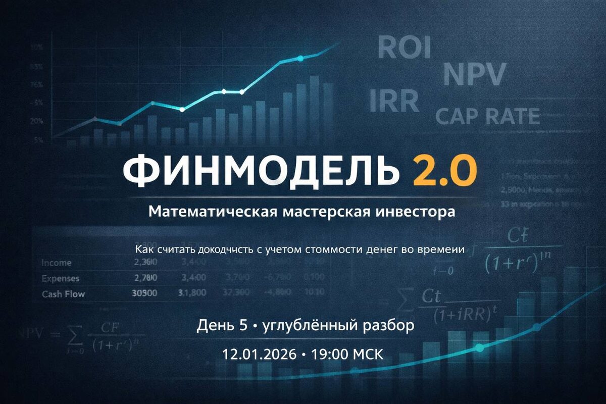 🧮 Математическая мастерская инвестора 📅 12 января 2026 · 19:00 МСК 🔒 Закрытый 3D-эфир 📍 День 5 · углублённый разбор Это не разговоры «про недвижимость», а работа с цифрами 📈 Разбираем финансовую модель расчёта доходности по-взрослому — с учётом ключевого параметра, который многие упускают: стоимости денег во времени ⏳💰 Пишите в л/с - пришлю ссылку