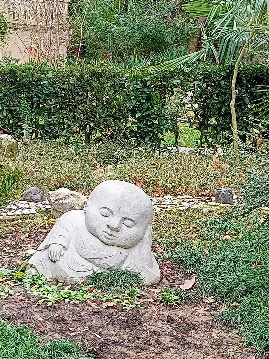 Здесь растут и бамбук, и клён японский. И, конечно, сакура.Есть прудик. Сад камней. Японские фонарики. На входе скульптура дракона. Рядом японский ресторан (я его не посетила, ничего сказать не могу)