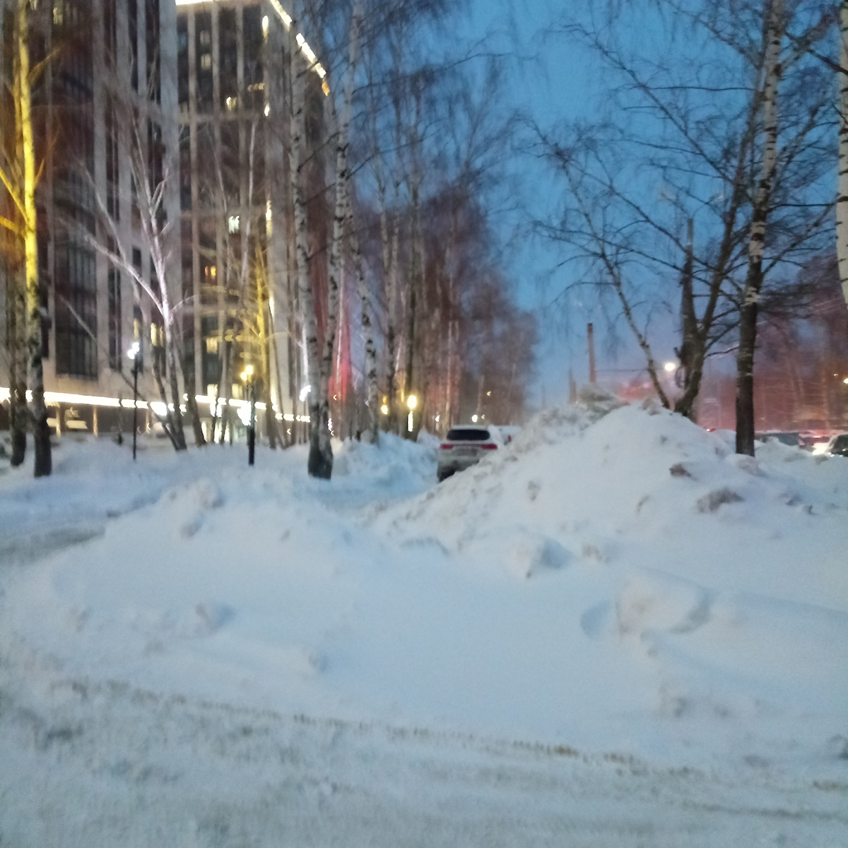 Приехала чуть пораньше, чем всегда , восьми нет, поэтому ещё темно. Иду к дому, на обочинах дорог сугробы и сугробищи.