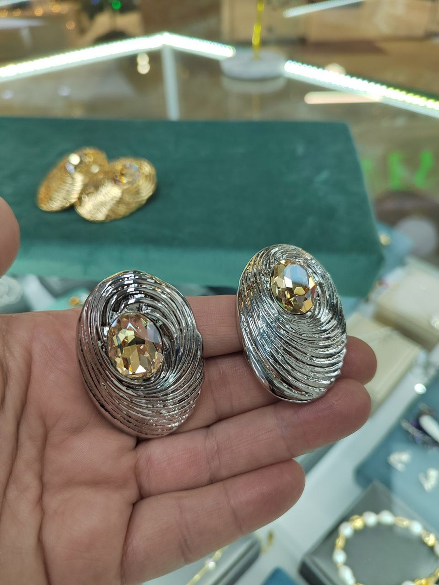 Крупные легкие серьги с итальянской застёжкой с золотистым стразом