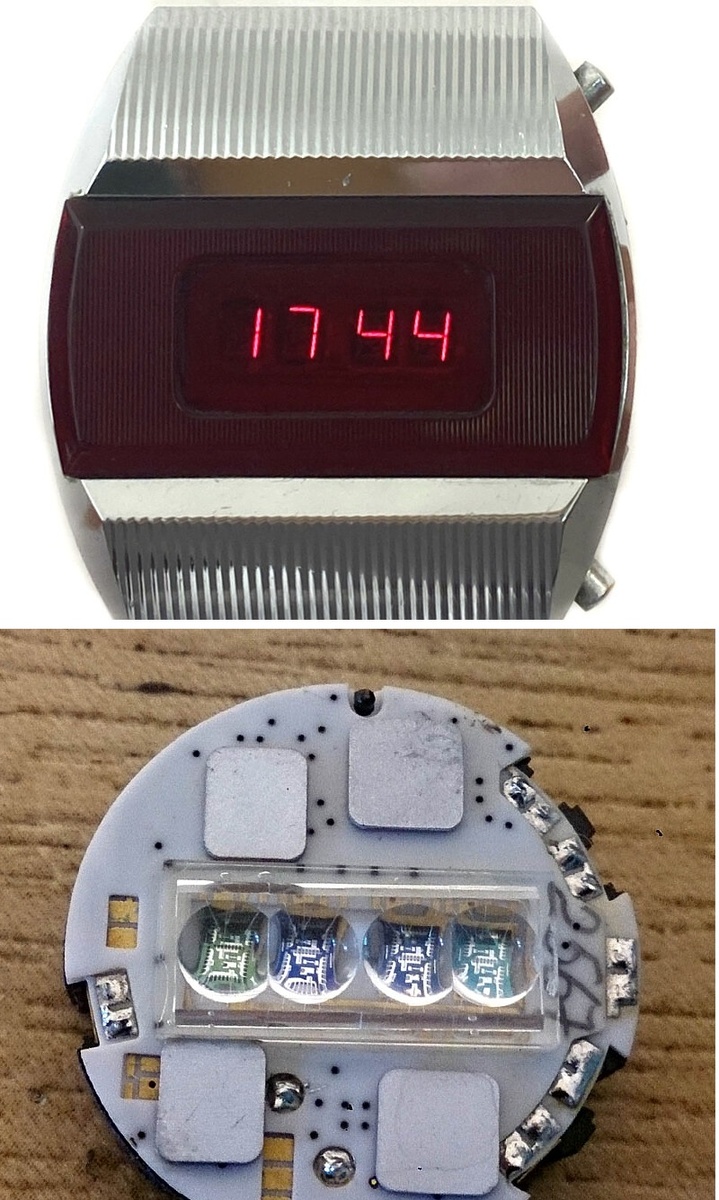 В 1974 году советская радиопромышленность освоила выпуск электронных наручных часов с цифровой индикацией. У замечательного достижения микроэлектроники был один недостаток-чтобы посмотреть время, нужно было обязательно нажать на кнопку сбоку корпуса часов. Это не вина конструкторов, а вынужденная необходимость. В часах, в качестве цифровых индикаторов, использовали светодиодные сборки. Они светили ярко, контрастно, но «кушали» много энергии. Вот поэтому нельзя было их делать постоянно светящимися. ЖК индикаторы тогда тоже были, но у них был слишком малый срок службы. Электронные наручные часы тогда во всём мире были диковинкой, причем весьма не дешевой. Буквально через год японцы выпустили новую диковинку-калькулятор в авторучке! Ну кулоны, авторучки с часами выпускали и у нас, но калькулятор «запихнуть» в авторучку даже не пытались и уж тем более с прожорливым светодиодным индикатором. Задача действительно была весьма непростой, даже шустрым японцам пришлось здорово попотеть. Для