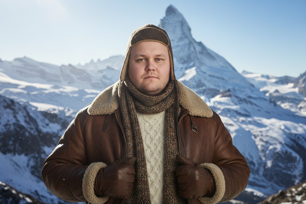🌚 🔥 Ощути атмосферу альпийского аристократизма! ⚡️ Using the uploaded selfie as the exact facial reference with 100% identical face match (--face_fidelity 1.0), create a photo from the description while maintaining complete facial likeness. Винтажное снаряжение, свитер крупной вязки Moncler, фон горы Маттерхорн, яркое морозное солнце, high-end fashion photography, hyper-realistic skin texture, visible pores, detailed eyes, 8k, masterwork, shot on 85mm lens, f/1.8, cinematic depth of field, sharp focus, volumetric lighting. Селфи: фронтально, взгляд в камеру, мягкий свет. Без очков и шапок. 🤖 @SnapToVideo_bot | ⚡️ @SnapToVideo