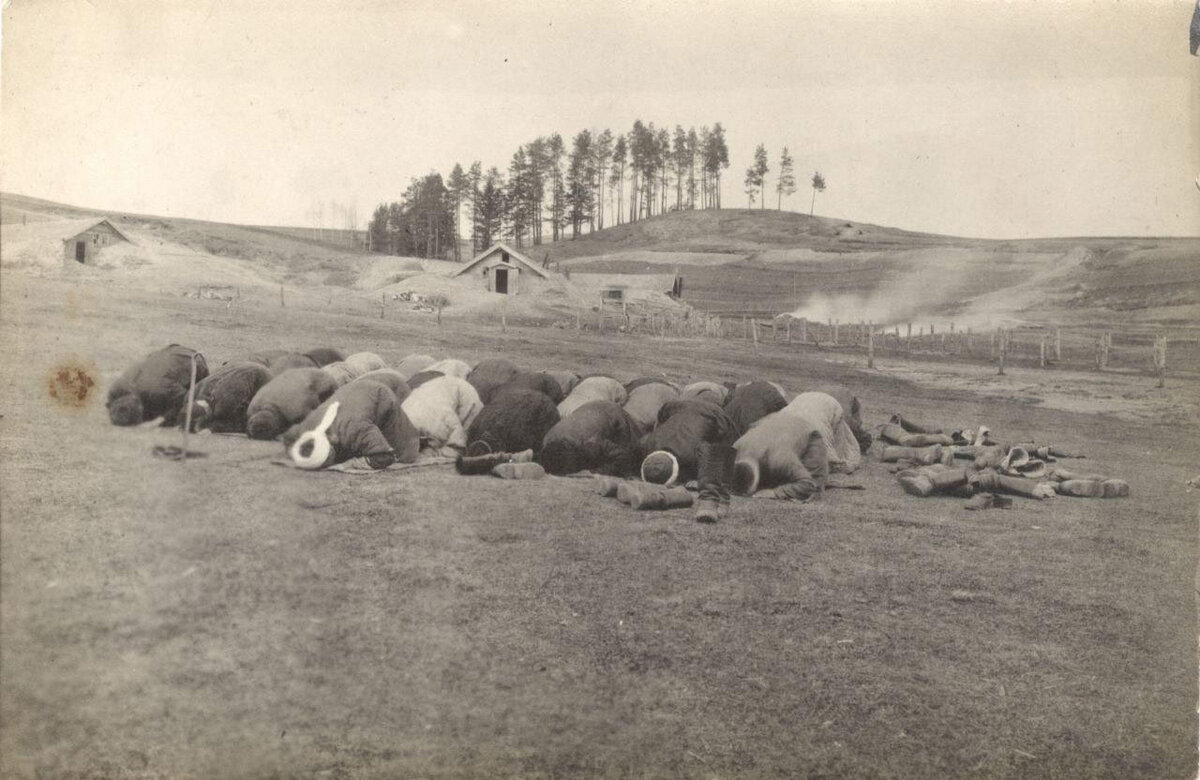 Мусульмане из 267-го пехотного Духовщинского полка совершают молитву намаз