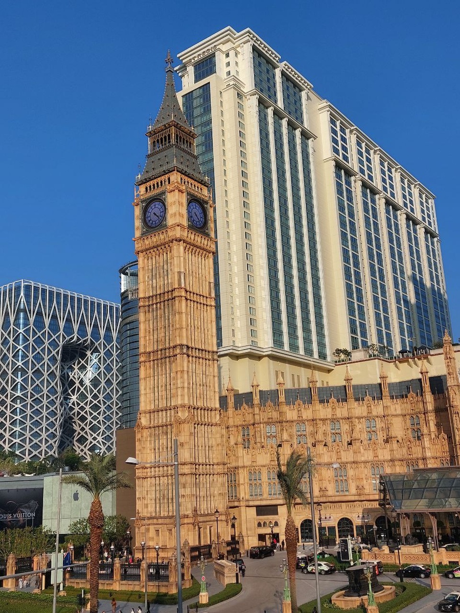 Когда я был в прошлый раз в Макао, этого отеля еще не было. Он открылся в 2021 году после масштабной реновации комплекса Sands Cotai Central. Этот курорт полностью посвящен Лондону: от викторианской архитектуры до классических красных телефонных будок и двухэтажных автобусов. Вот основные фишки "Лондонца": • Биг-Бен (Big Ben): Перед отелем стоит копия башни Елизаветы в натуральную величину (высота 96 метров). Каждый вечер она подсвечивается так же, как и её оригинал в Лондоне. • Здание Парламента: Фасад отеля полностью повторяет Вестминстерский дворец. Его длина составляет около 400 метров. • Световое шоу: По вечерам фасад отеля превращается в экран для масштабного светового и музыкального шоу (Londoner Light and Sound Spectacular). • Главный холл (Crystal Palace) Это огромный атриум в викторианском стиле из стекла и железа. • В центре стоит точная копия фонтана Шафтсбери со статуей Эроса (оригинал находится на площади Пикадилли в Лондоне). • Здесь проходит главное шоу отеля — «