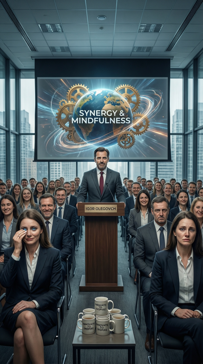 -Коллеги! — вещал с трибуны Игорь Олегович, его голос звенел, как новая монетка. — С сегодняшнего дня мы — не просто коллектив! Мы — семья! Нас объединяют не только общие цели, но и общие ценности! Наш компас в мире жесткой конкуренции! Наш моральный кодекс!