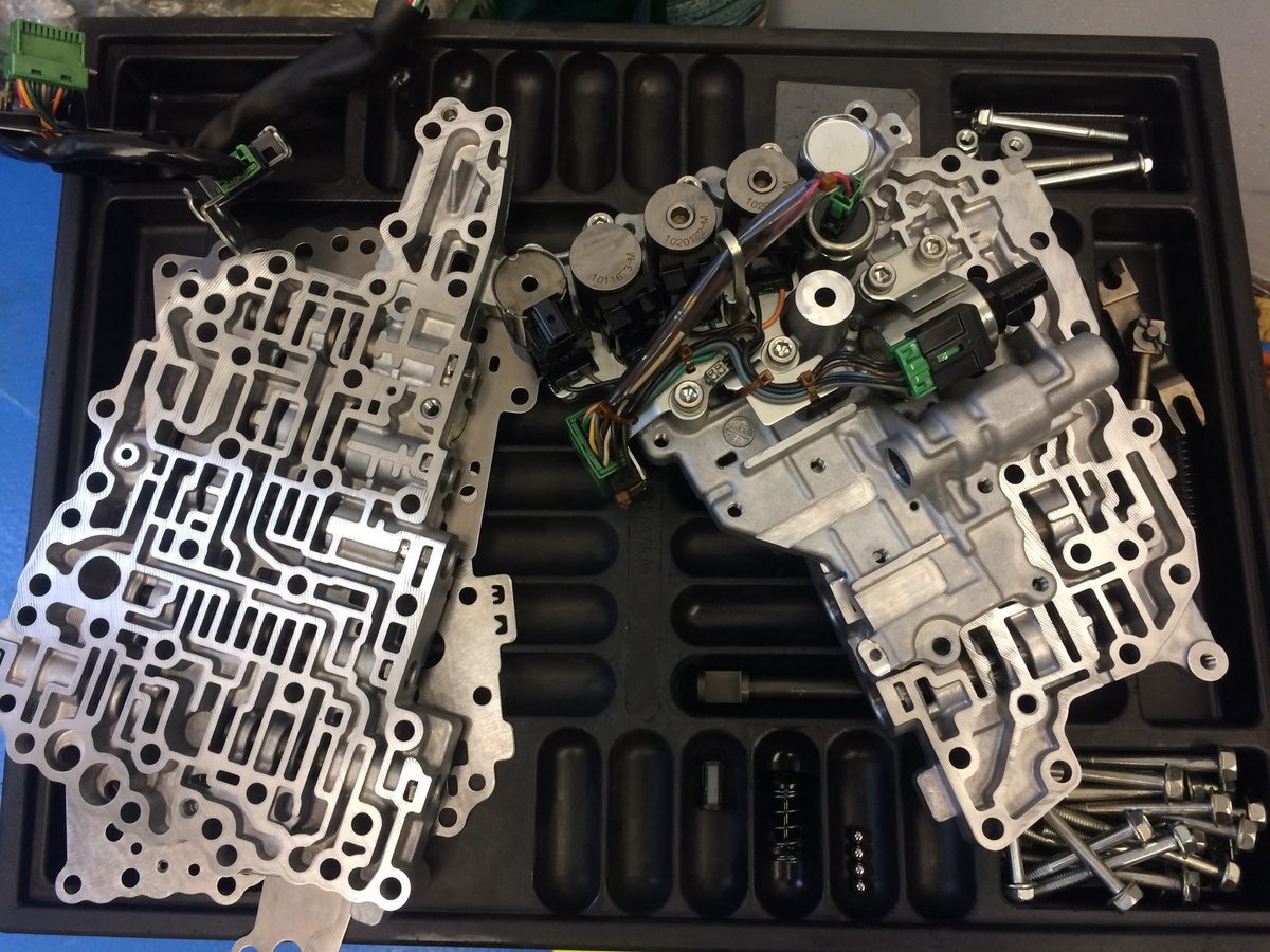 - Что это? Тот же гидроблок с лабиринтом каналов, но к нему «прикрутили» электронный блок управления (ЭБУ), соленоиды (электромагнитные клапаны) и кучу датчиков. Всё в одном корпусе, который часто погружён прямо в масло АКПП.