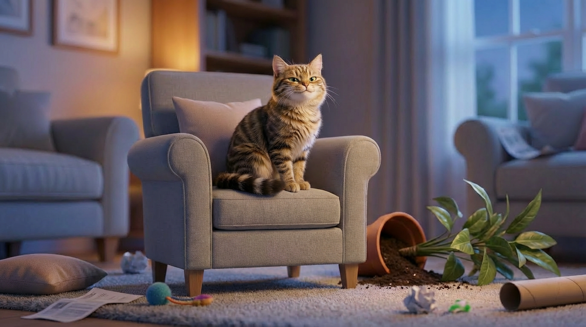 Начнем с самого очевидного, что обычно бесит хозяев больше всего. Кот начинает крушить всё подряд.