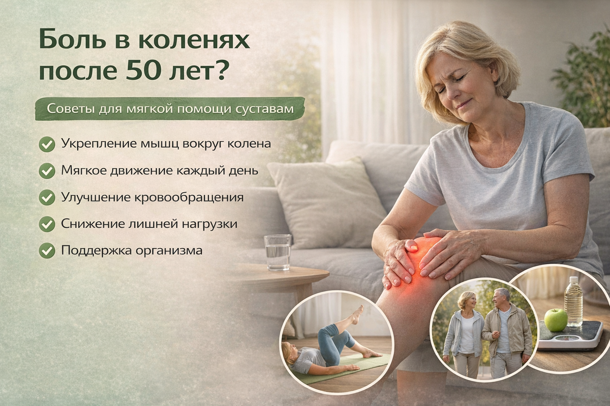 И именно они часто начинают болеть первыми. Многие рассказывают: «Пока сидишь — вроде ничего. Встанешь — тянет. По лестнице идти тяжело. Наверное, стёрлись суставы…» Разберёмся спокойно и грамотно, что происходит на самом деле. После 45–50 лет обычно накладывается сразу несколько факторов: • ухудшается кровообращение в области сустава