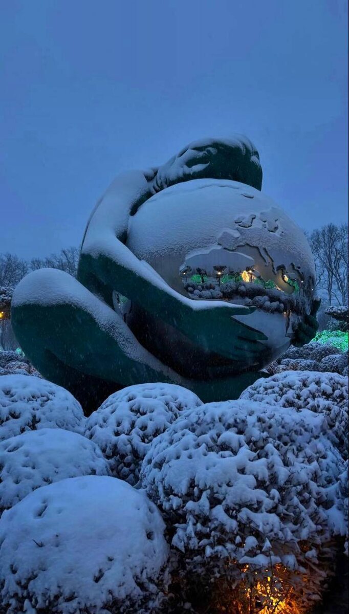 Мать-Земля заботливо приобняла наш заснеженный шарик