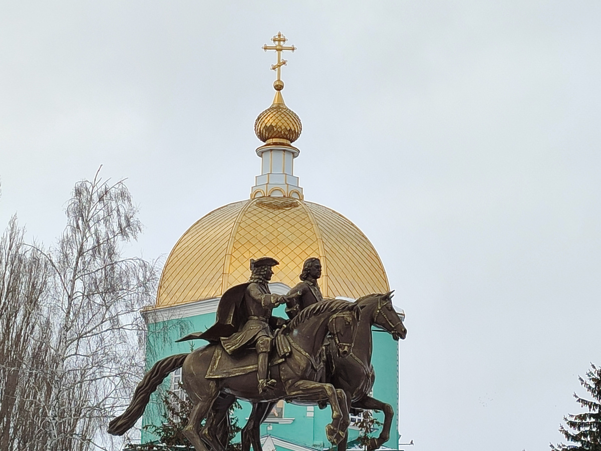 Но, пожалуй, начать нужно с того момента, когда на Рясском поле у слияния рек Становой, Московой, Ягодной и Гущиной Ряс в 1638 году появилось село с великолепным названием Усть Становых Ряс под Слободским Липягом. Даже интересно, почему, когда периодически поднимается вопрос о возвращении исторического названия, никто не думает вернуть именно это? Такое уж точно было бы не забыть. Сюда по Указу Петра I отселили одиннадцать служилых людей из города Козлова, образовав военное поселение, которое вскоре стало называться просто Слободским. Пётр I часто останавливался в этих местах по дороге из Москвы на воронежские корабельные верфи. В 1702 году он подарил село Александру Даниловичу Меншикову за взятие Нотебурга в ходе Северной войны. А Меншиков даже собирался отстроить здесь некое подобие Петербурга. Сегодня мы можем любоваться единственным в России общим памятником Петру I и Александру Меншикову, установленным 17 августа 2013 года (скульптор Андрей Сулин).