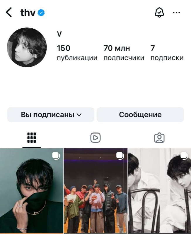 🔮 Тэхён преодолел отметку в 70 миллионов подписчиков в Instagram
