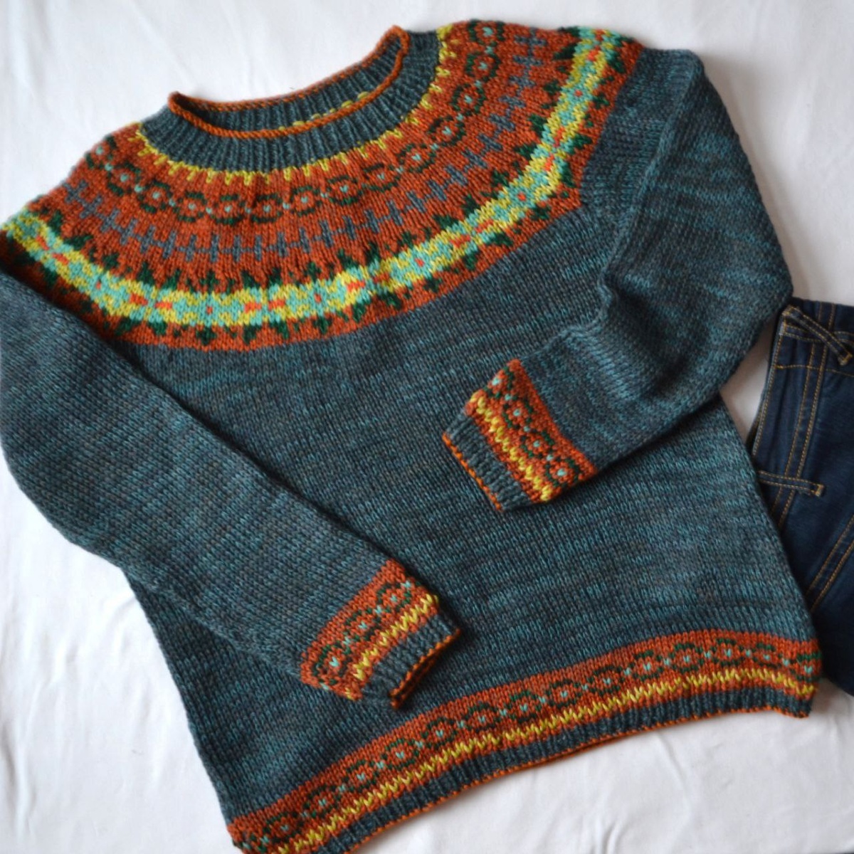 Джемпер в стиле Лопапейса. "Джинсовый" цвет. Меринос с минимальной добавкой полиамида. Ширина 50, длина 60 см. В наличии.