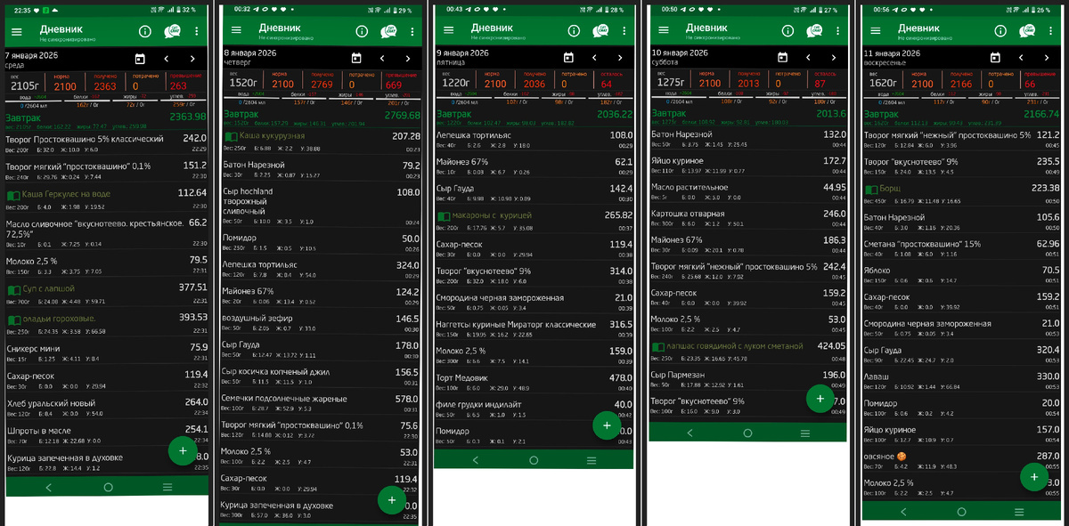 Калорийность за предыдущие дни с 7 по 11 января посчитана.