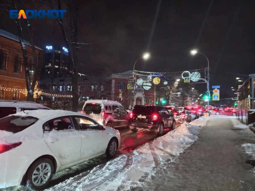 Снегопад и гололед парализовали Краснодар в вечерний час пик
