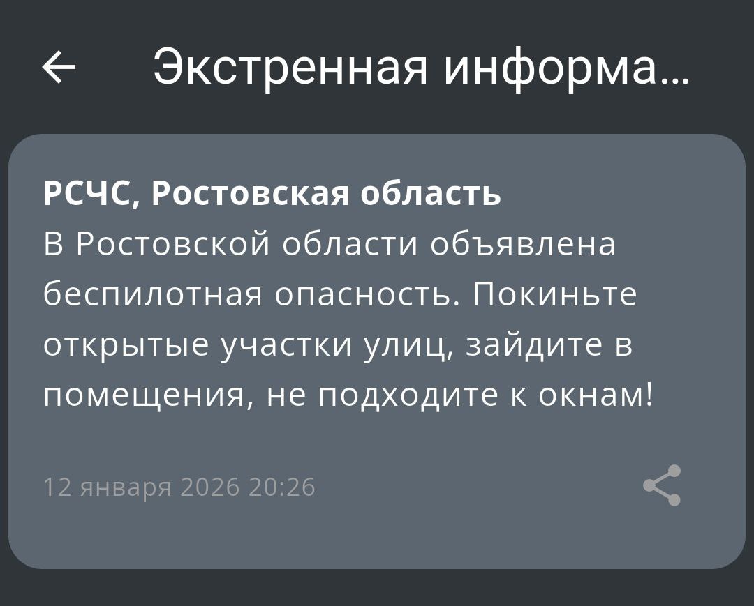 ‼️Экстренная информация РСЧС: В Ростовской области объявлена беспилотная опасность.
