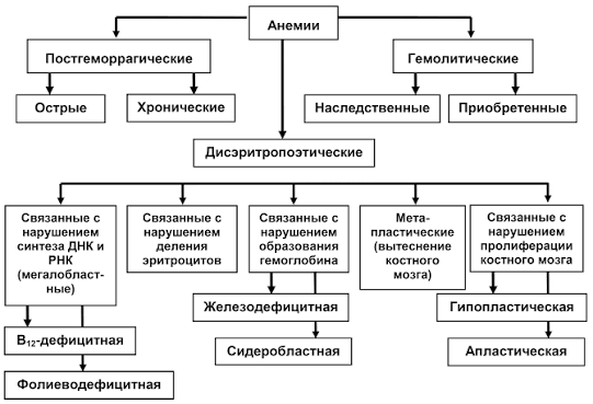 · Анемии при хронических болезнях: Воспаление мешает нормальному кроветворению.