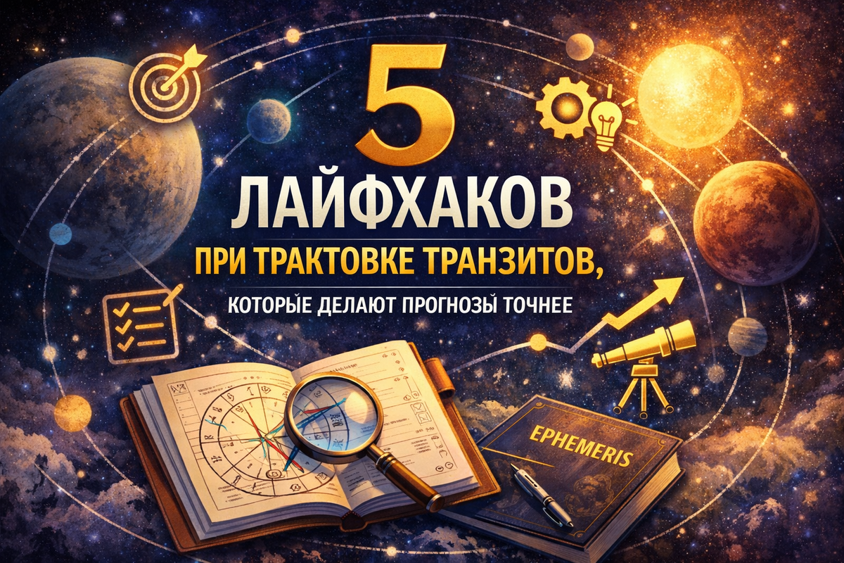 «эта планета хорошая, эта плохая». В результате прогноз либо не срабатывает, либо вызывает недоумение. На практике транзиты работают гораздо глубже и тоньше. Делюсь пятью лайфхаками, которые помогают делать реальные, жизненные и точные прогнозы. Это базовый принцип, который нарушают чаще всего. В прогнозах не работает логика «Юпитер — всегда удача» или «Сатурн — всегда плохо». Если в натальной карте Юпитер: то в транзитах он в большинстве случаев приносит не расширение, а проблемы: завышенные ожидания, финансовые ошибки, юридические сложности, разочарования. Транзит всегда проигрывается через качество натальной планеты. Поэтому без глубокого анализа натала прогноз превращается в общие слова. Ещё одна частая ошибка — ждать внешних событий от каждого транзита. На самом деле многие транзиты показывают: Со