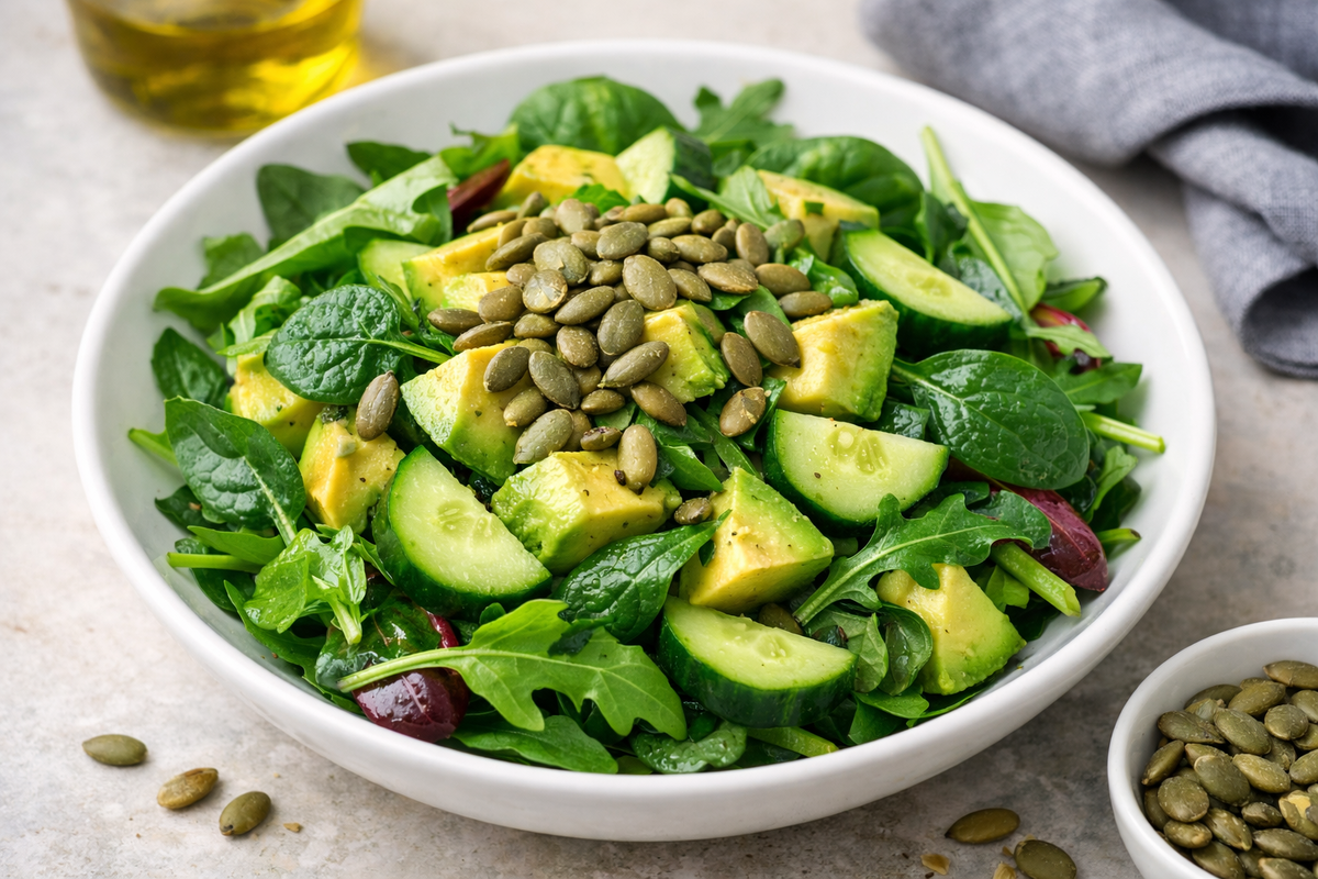 Знаешь, бывают такие дни, когда хочется чего-то особенного, но стоять у плиты три часа — совсем не вариант. Я подготовила для тебя подборку моих самых любимых салатов. Они разные: один — элегантный и легкий, другой — сытный, а третий — настоящий «взрыв» вкуса. Лови мой личный топ, который выручает и в будни, и на праздники! 1. Салат «Зеленая богиня» (Мой фаворит для детокса) Он идеально подходит для легкого ужина или когда хочется почувствовать себя «на миллион». Ингредиенты: · Спелое авокадо — 1 шт. · Огурец свежий — 2 шт. · Микс салата (шпинат, руккола) — большой пучок. · Тыквенные семечки — горсть. · Заправка: оливковое масло, сок лимона и капелька меда. Приготовление: Просто нарезаем огурцы и авокадо кубиками, смешиваем с зеленью. Секрет в заправке: хорошенько взбей масло с лимоном до эмульсии. Посыпь семечками перед подачей — это добавит приятный хруст!2. Праздничный шик: Креветки + Манго Если хочешь удивить подруг на девичнике или устроить романтический вечер — это твой выбор. С