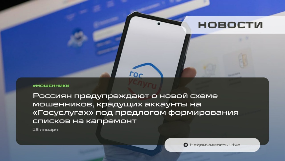 ⚡️ Россиян предупреждают о новой схеме мошенников, крадущих аккаунты на «Госуслугах» под предлогом формирования списков на капремонт
