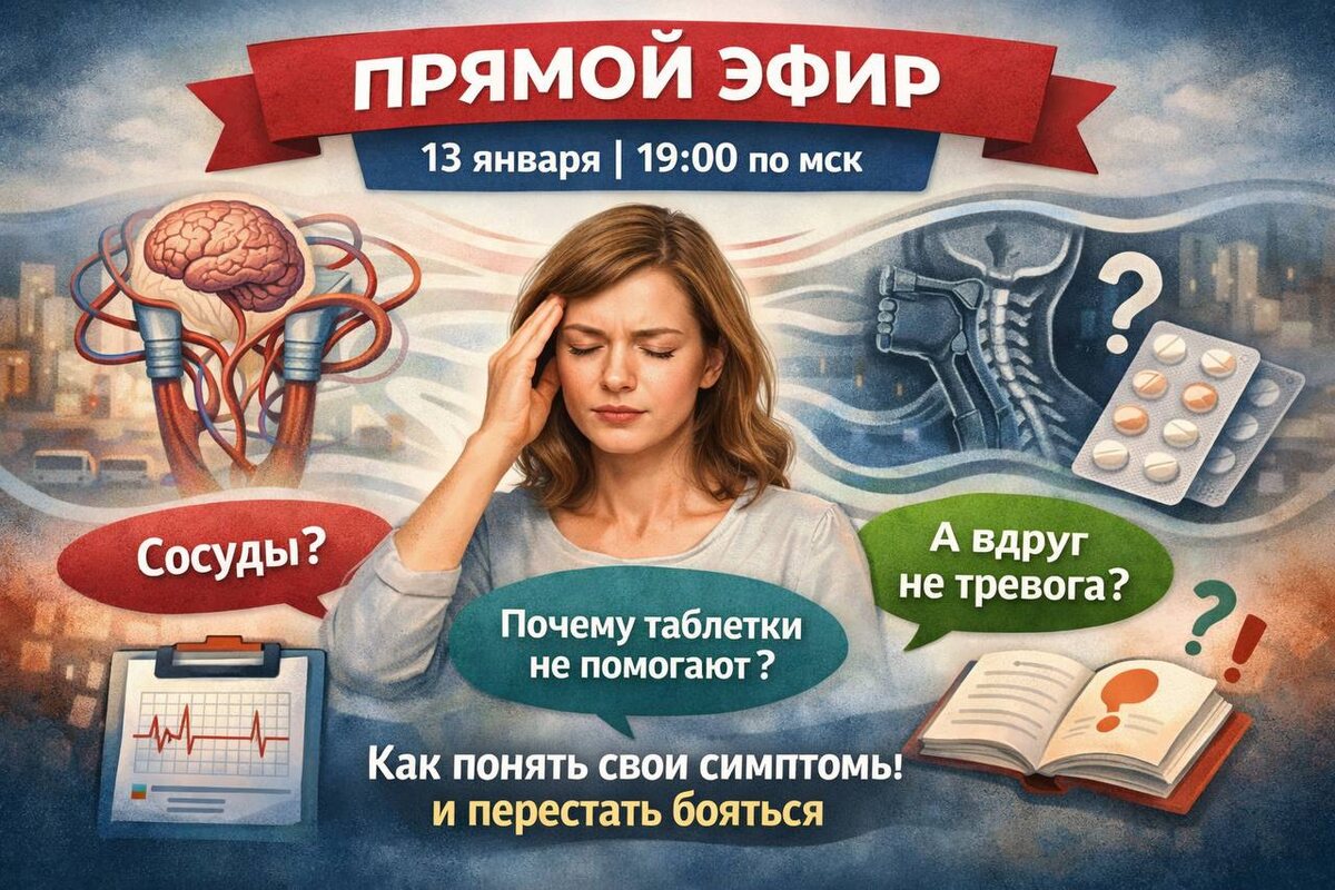 … А вдруг это не тревога? Может, сосуды? Шея? Почему кому-то назначают таблетки, а мне — нет?..» Если ты: — читаешь чужие истории и примеряешь их на себя — сомневаешься в диагнозе — ищешь «ту самую причину» своих симптомов — не понимаешь, почему врачи говорят про тревогу, а тело продолжает пугать ➡️ этот эфир для тебя. Я всё чаще вижу, как медицинские обследования, чужие советы и “помогающие таблетки” не успокаивают, а наоборот — усиливают тревогу и запускают бесконечные сомнения. ❗️И проблема не в тебе и не в том, что «что-то упустили». 🔴 ПРЯМОЙ ЭФИР 13 января | 19:00 по мск На эфире разберём: — почему лекарства «от головокружения» часто не работают при шаткости — почему кому-то «помогло», а тебе — нет — почему врачи не назначают такие препараты (и это хороший знак) — как отличить тревожную шаткость от реальной неврологии — почему поиск «причины» удерживает симптомы годами — что на самом деле нужно нервной системе, чтобы симптомы начали ослабевать Без запугивания. Без