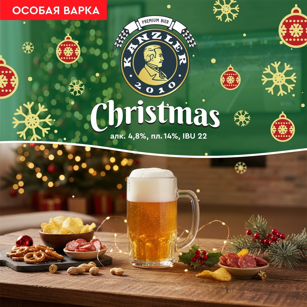 Kanzler Christmas — новый лимитированный лагер к Новому году: светлый, праздничный, питкий, с красивым золотистым цветом и мягким хмелевым акцентом.
