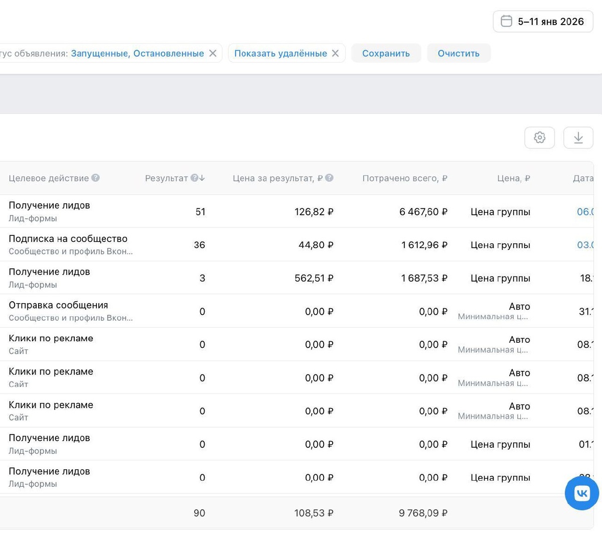Не в режиме гонки, а спокойно. Тестил новые заходы, смотрел, как они себя ведут. Фон был нестандартный. От оливье в этом году отказался, сделал ФГДС. По рекомендациям сейчас диеты стол 1, 5 и 6. Параллельно съездил к родным в поселок, немного сменил обстановку. Расслабляться было нельзя. Аукцион в рекламе был низкий, и это редкий момент, когда можно протестировать больше связок до начала рабочих дней. Хотелось это окно использовать по максимуму. По ходу недели всплывали не только вопросы по рекламе. Были проблемы с лидами, помогал нескольким клиентам подключать amoCRM и настраивать процессы. Был момент, когда хотелось просто все стопнуть и реально отдохнуть. Каникулы же. Отдельно не хотелось запускать Яндекс Директ в эти дни. Много непонятных вводных, когда никто не ответит. И совсем не тянуло менять стратегию на ходу по ВК, особенно когда видел, что по цели мини-апп лиды есть, а живого отклика почти нет. В итоге решил не тянуть и не упускать момент с низким аукционом. Даже включи