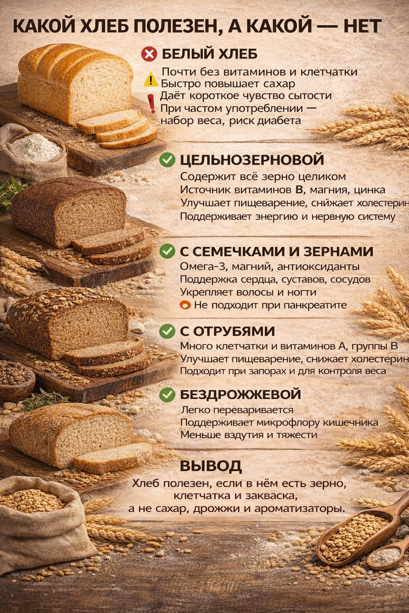 Я часто получаю вопросы: какой хлеб действительно полезен, а какой лучше оставить на полке магазина. Сегодня делюсь простой и понятной инструкцией, которая поможет вам выбрать хлеб без вреда для здоровья — даже если вы совсем новичок в теме.