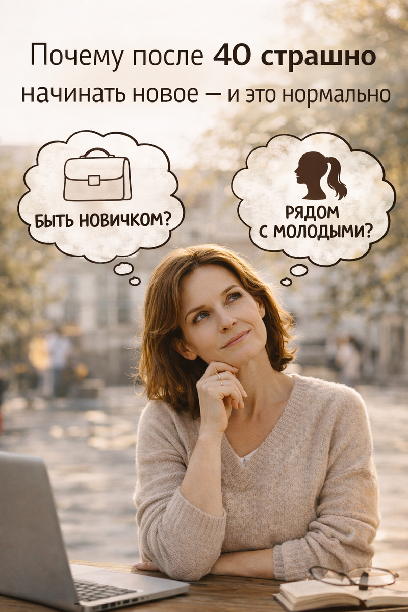Ошибки воспринимаются как опыт. Время кажется бесконечным. После 40 всё иначе. Ты уже знаешь: И главное — ты уже знаешь, кем ты была. Поэтому быть новичком в этом возрасте ощущается не как старт, а как потеря статуса. Чего на самом деле боится взрослый человек Редко боятся самого нового. Боятся того, что с ним связано. Боятся: Боятся услышать внутри: «Как ты до этого докатилась?» Именно поэтому многие выбирают не начинать вовсе. Не потому что не хотят. А потому что слишком хорошо понимают цену ошибки. Как выглядит этот страх в жизни Он редко выглядит как паника. Чаще — как откладывание. Человек: Но так и не делает первый шаг. Говорит себе: