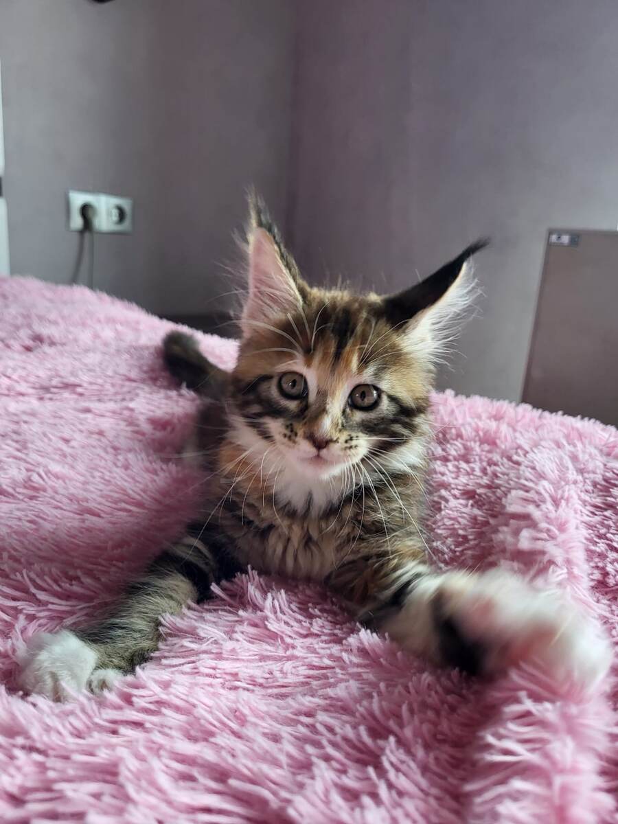 Кошка породы Мейн-кун , растет и развивается.