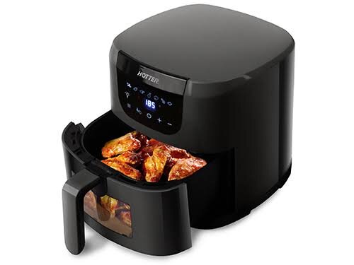 · Классические аэрогрили с колбой (Hotter HX-533): Часто имеют стеклянную чашу большего объема (5.5 л), но менее компактны и современны на вид.