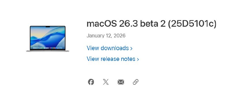 Всех с началом первой трудовой недели 2026го года! Видимо, купертиновцы тоже вышли на работу и выкатили 2ю бету macOS 26.3, после почти месяца "молчания".