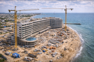 Главгосэкспертиза России выдала положительное заключение на проектно-сметную документацию строительства гостиницы категории 5* в Дербенте. Новый круглогодичный приморский гостиничный комплекс планируется возвести в районе Коса. Об этом сообщила корпорация «Туризм.РФ», выступающая стратегическим партнёром проекта. Согласно проектным решениям, на участке площадью около 4 гектаров будет создан полноценный курортный кластер. Гостиница рассчитана на 186 номеров премиум-класса. Помимо номерного фонда, в состав комплекса войдут спа-центр с акватермальной зоной, бассейны с элементами аквапарка, рестораны, летние концертные площадки и собственная пляжная инфраструктура. Объект будет ориентирован на круглогодичный приём туристов. Отдельное внимание в проекте уделено развитию делового туризма в Северо-Кавказском федеральном округе. В составе гостиницы предусмотрен многофункциональный центр, который планируется использовать для проведения деловых мероприятий, конференций и встреч. По оценкам участ