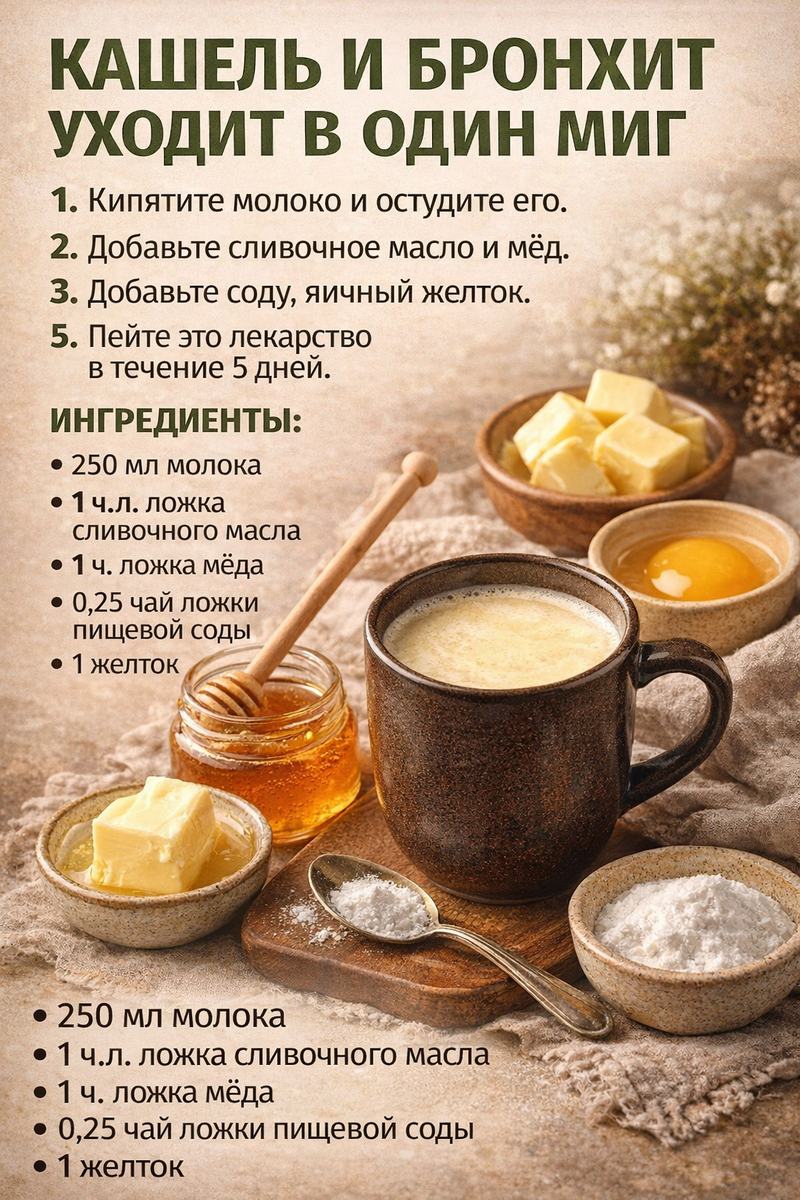 Иногда самые простые вещи оказываются самыми тёплыми и заботливыми. Стакан тёплого молока, немного мёда, сливочного масла — и сразу становится уютнее не только горлу, но и душе.