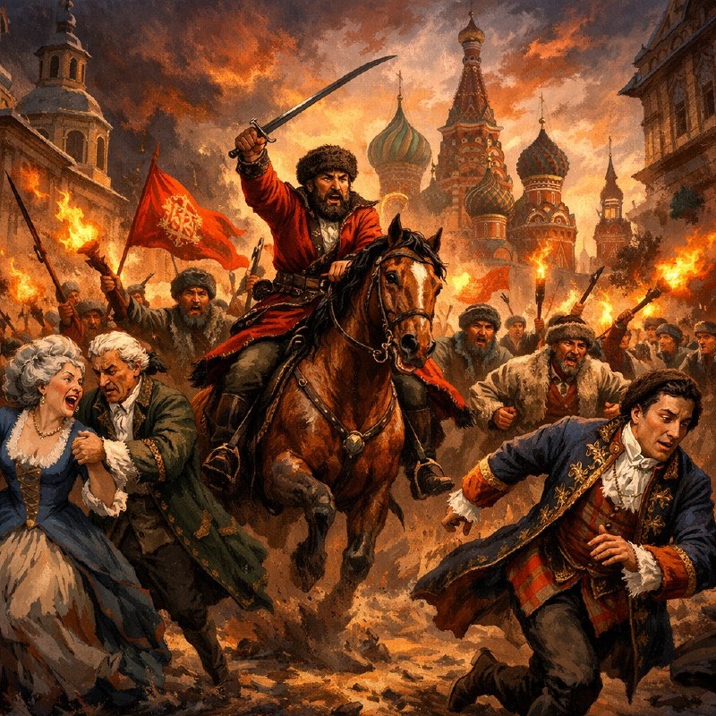 Представьте: 1775 год. Войска Емельяна Пугачёва берут Москву. Императрица Екатерина II бежит. Казаки и крестьяне торжествуют. Что дальше? Стала бы Россия республикой на 150 лет раньше? Увы, история говорит: нет. И вот почему. Цель бунта: не отмена трона, а «правильный» царь Пугачёв никогда не воевал против монархии. Наоборот — его главным оружием была вера в доброго царя. Он вёл восстание под именем «воскресшего императора Петра III». В своих манифестах он жаловал казаков реками и землями, крестьян — волей, а всех — освобождением от налогов. Его врагом были не цари, а «злые дворяне», которые, по мнению народа, обманывали государя и угнетали простых людей. Ни в одном документе Пугачёва нет идей о народовластии или гражданских свободах. Его идеал — справедливое самодержавие, где царь-батюшка напрямую защищает народ от чиновников и помещиков. Кто шёл за Пугачёвым и чего хотел? Его армия была союзом очень разных сил: Объединяла их не политическая программа, а ненависть к местным угнетателя