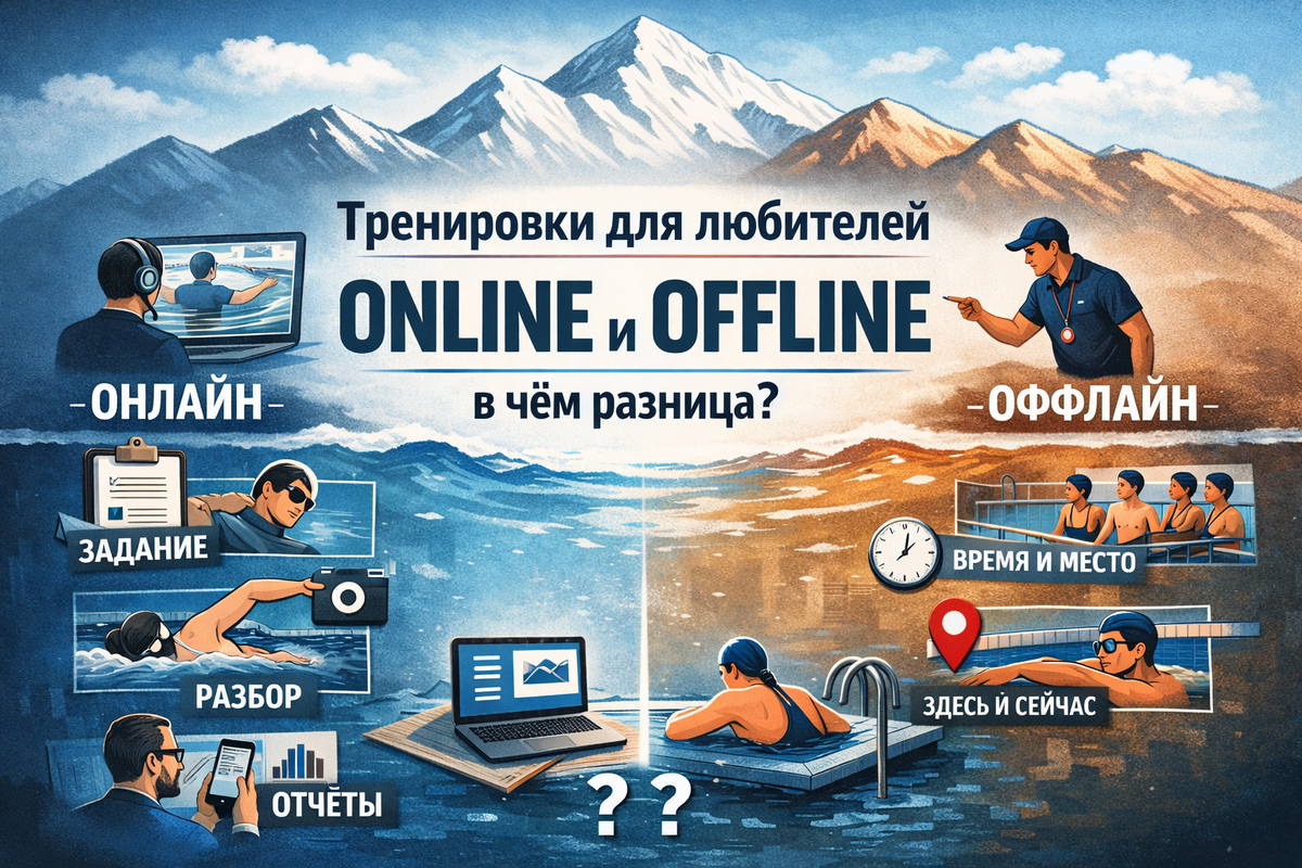 В зале — ещё ладно. А тут вода, техника, ощущения, которые сложно объяснить словами. Кажется логичным: если тренер не стоит на бортике, значит, толку не будет. Многие так думают. И не без причин.