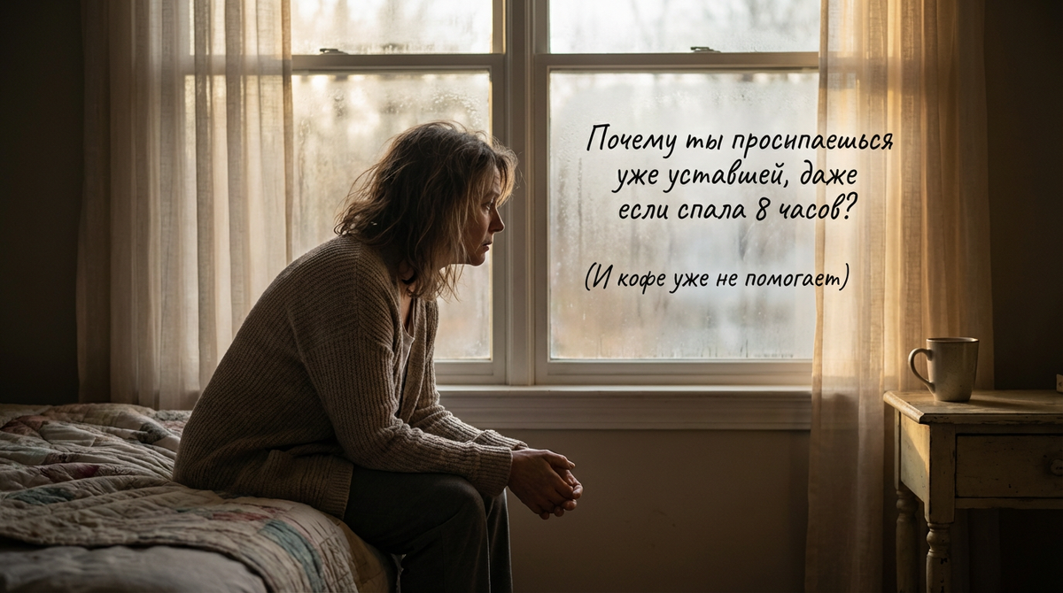 Ты просыпаешься, и первое, что замечаешь — тело будто не отдыхало. Глаза тяжелые, мысли вялые, энергии ноль. Ты проверяешь время — 8 часов сна, как обычно. Но ощущение, что не спала вовсе. И даже кофе, который раньше бодрил, теперь не помогает. Ты не ленивая. Ты заботишься о себе. Спишь по режиму, питаешься правильно, стараешься. Но что-то внутри работает не так. И это не просто усталость — это сигнал, что твой организм накапливает ущерб. Если ты узнаёшь себя в этих ощущениях «просыпаюсь уставшей», «кофе не бодрит», «как будто не выспалась», — ты не одна. Но важно понимать: это не про возраст или лень. Это про накопительный ущерб, который текущие подходы не решают. Ты пробовала всё. Рано ложилась спать, пила травяные чаи, устраивала ритуалы. Купила ортопедическую подушку, затем матрас. Изменила питание, начала пить больше воды. Но утром — всё то же ощущение: «как будто не спала». Мария, 35 лет, годами думала, что проблема в сне. Она делала всё «правильно»: ложилась в 22:00, не смотрел