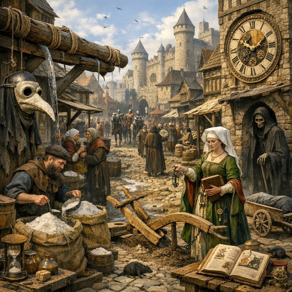 Мы привыкли видеть Средневековье в двух красках: чёрной («тёмные века») и розовой (рыцари, замки). Реальность была сложнее, парадоксальнее и зачастую — противоположна нашим представлениям. 1. Водопровод был. Но его уничтожила… чума. Да, в XIII веке в Лондоне и Париже строили деревянные водопроводы, а замки имели проточные туалеты. Но именно прогресс в санитарии (сконцентрировавший людей у источников воды) помог Чёрной смерти 1347–1351 гг. выкосить до 60% Европы. 2. Женщина-вдова была опаснее женщины-жены. Законная жена действительно была подчинена мужу. Но вдова меняла статус на «главу дома». Она могла наследовать бизнес, судиться, давать деньги в долг и управлять поместьем. 3. Любовь к детям доказывает… детская могила. Археологи находят в погребениях V–VIII вв. погремушки из глины и дерева, крошечные куклы и деревянные мечи, положенные в могилу ребёнка. Это не символ равнодушия, а свидетельство горя и веры, что игрушка утешит в загробном мире. Детей любили, но хоронили чаще, чем сег