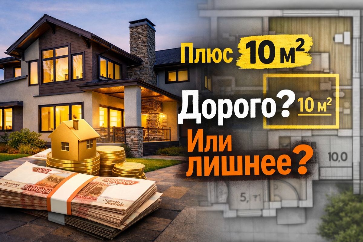 Многие удивляются, но каждые лишние 10 м² в частном доме действительно обходятся примерно в миллион рублей. Это не страшилка и не маркетинг — это сумма фундамента, стен, кровли, отделки и инженерии. Ниже расскажу, как этот «лишний метр» потом годами тянет деньги. Люди строят либо компактные дома до 100–150 м², либо сразу очень большие особняки. А вот средний сегмент 160–250 м² постепенно вымирает. Почему так происходит — давайте разберёмся без воды, на практике. Дом 180–220 м² на бумаге выглядит логично: — вроде не маленький — вроде «на вырост» — вроде солидно Но в реальности он часто оказывается самым невыгодным вариантом. Почему 👇 В итоге люди платят за метры, в которых не живут. Компактные дома 100–150 м² сейчас — самый популярный запрос. Маленький дом не про экономию любой ценой, а про очень грамотную планировку. Дома 250–400+ м² обычно строят осознанно — и это нормально. Но важно понимать последствия 👇 Часто вижу: в доме 300 м² семья реально живёт на 120–150 м², остальное — «ну