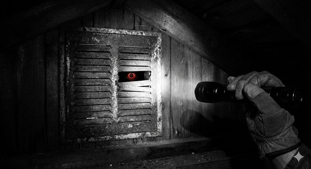 Вся улица была забита копами. Я нырнул под жёлтую ленту, которой обнесли дедов дом. Меня тормознули двое полицейских. Я объяснил, кто я такой. Подошёл детектив. — Вы внук? — Да! — Мы пытались связаться с вашими родителями. — Они в отпуске. Где мой дед?! — Во сколько вы ушли отсюда вчера? — Около пяти. — Заметили что-нибудь странное? — Нет. — Соседи говорят, вы обычно уходите в одно и то же время, но вчера задержались больше чем на час. — У него были галлюцинации. Он твердил, что на чердаке кто-то есть, поэтому я зафигачил кучу саморезов в решётки вентиляции. — Мне жаль это говорить, но на чердаке вашего деда уже какое-то время кто-то жил. Он выходил по ночам. Возвращался до рассвета. Чтобы забираться внутрь и вылезать обратно, он использовал дуб на заднем дворе. Он был там, когда вы закручивали саморезы. Он не смог выбраться. Несколько часов назад он пробрался в дом через потолочный люк. Ваш дед его напугал, и тот забил старика до смерти крышкой от этого самого люка. Мы пытались найти ваши контакты. Как вы поняли, что что-то не так? — Я сделал фотографии, чтобы доказать ему, что решётки заперты. Я проснулся и посмотрел на них ещё раз. Я протянул ему телефон. На одной из фотографий был блик от вспышки, но если присмотреться, за решёткой можно было разглядеть размытое лицо.