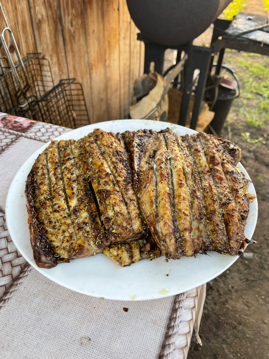 - Важный этап — подготовка рыбы. Ее тщательно промывают, затем потрошат и удаляют жабры. Не игнорируйте этот этап, потому что именно жабры дают горьковатый привкус и могут испортить общее впечатление от скумбрии на мангале.