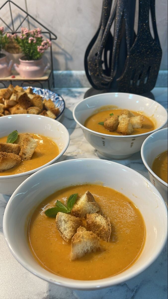 • Зелень 1️⃣ Куриное филе нарежь кубиками, залей 1,5–2 л воды, доведи до кипения, сними пену. Вари 15 минут. 2️⃣ Добавь нарезанный картофель. 3️⃣ Лук и морковь обжарь до мягкости (не до зажарки!) и отправь в суп. 4️⃣ Когда картофель станет мягким, добавь плавленый сыр, тщательно размешай до полного растворения. 5️⃣ Влей сливки, доба