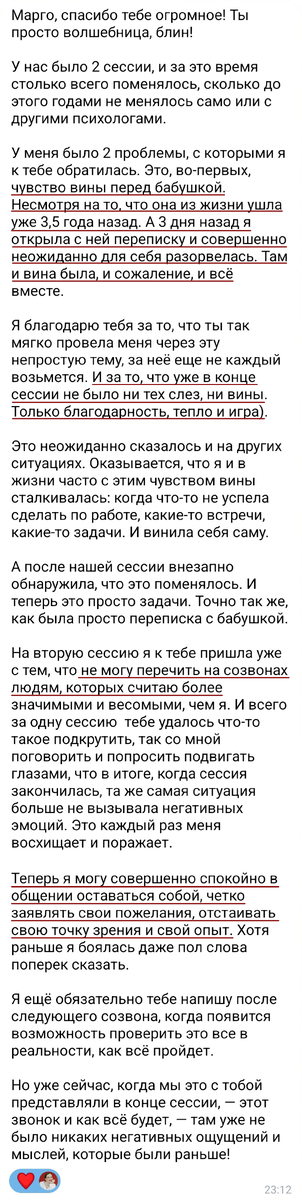 Но знание того, что делать с клиентом в этом случае, кратно ускорило мою работу. И вот отзыв после вчерашней такой сессии.