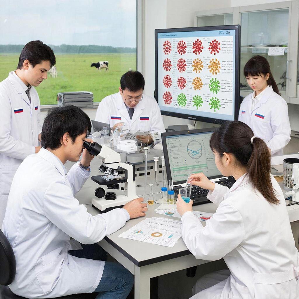 Учёные Всероссийского научно-исследовательского института ветеринарии и диагностики заболеваний животных (ФГБУ "ВНИИЗЖ") создали уникальную вакцину для борьбы с распространёнными заболеваниями крупного рогатого скота (КРС). Препарат прошёл успешную государственную регистрацию в России, подтвердив своё высокое качество, надёжность и безопасность. Новая разработка предназначена для профилактики четырёх серьёзных вирусов, представляющих угрозу для домашних коров: парагриппа-3, инфекционного ринотрахеита, вирусной диареи и респираторно-синцитиальной инфекции. Эти болезни приводят к тяжёлым последствиям, негативно влияющим на здоровье животных и экономическое благополучие фермерских хозяйств. Созданная учёными ФГБУ "ВНИИЗЖ" вакцина обладает рядом значительных преимуществ: Благодаря успешной регистрации новой вакцины специалисты ожидают значительный положительный эффект для сельского хозяйства России, улучшая состояние здоровья животных и повышая производительность ферм. Вирусные инфекции п