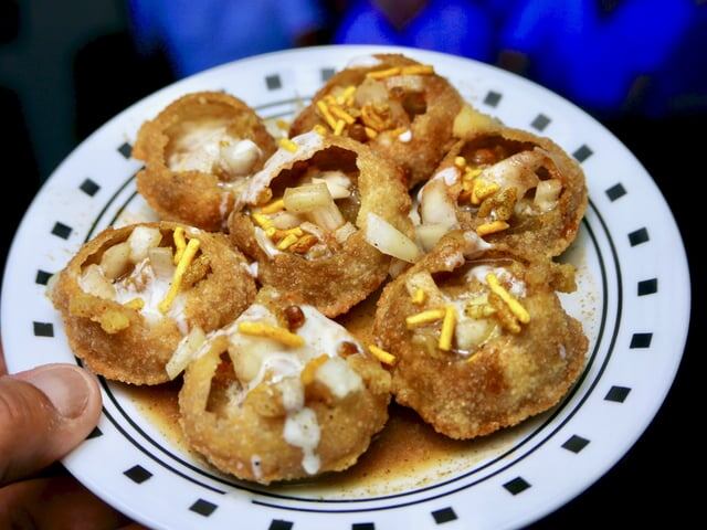 Крошечные полые шарики из теста, наполненные пряной водой, нутом и картофелем, — визитная карточка индийских уличных лавок. Это блюдо особенно популярно в Мумбаи, где его продают на каждом углу.
