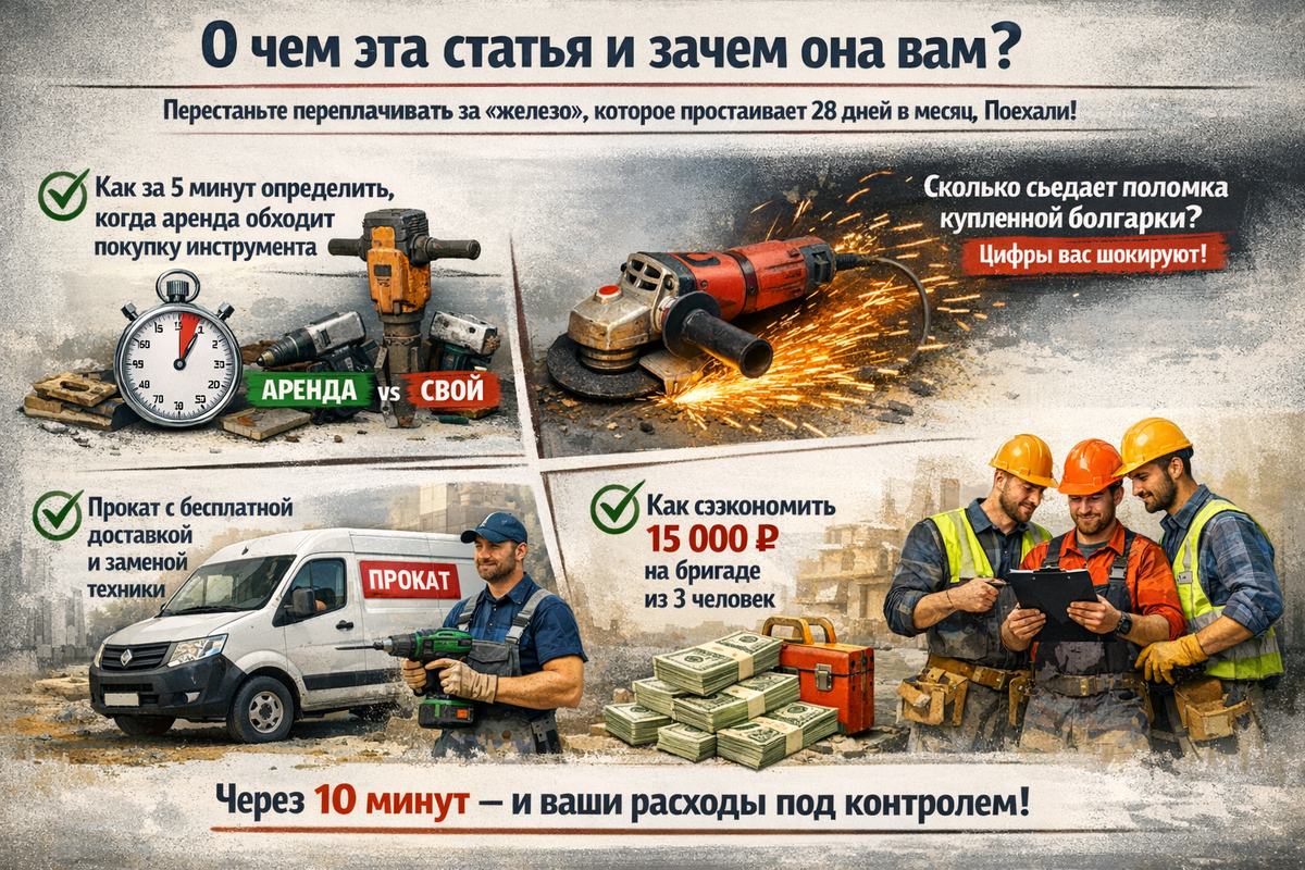 ✓ Как за 5 минут определить, когда аренда строительного инструмента обходит покупку даже для ежедневных задач.