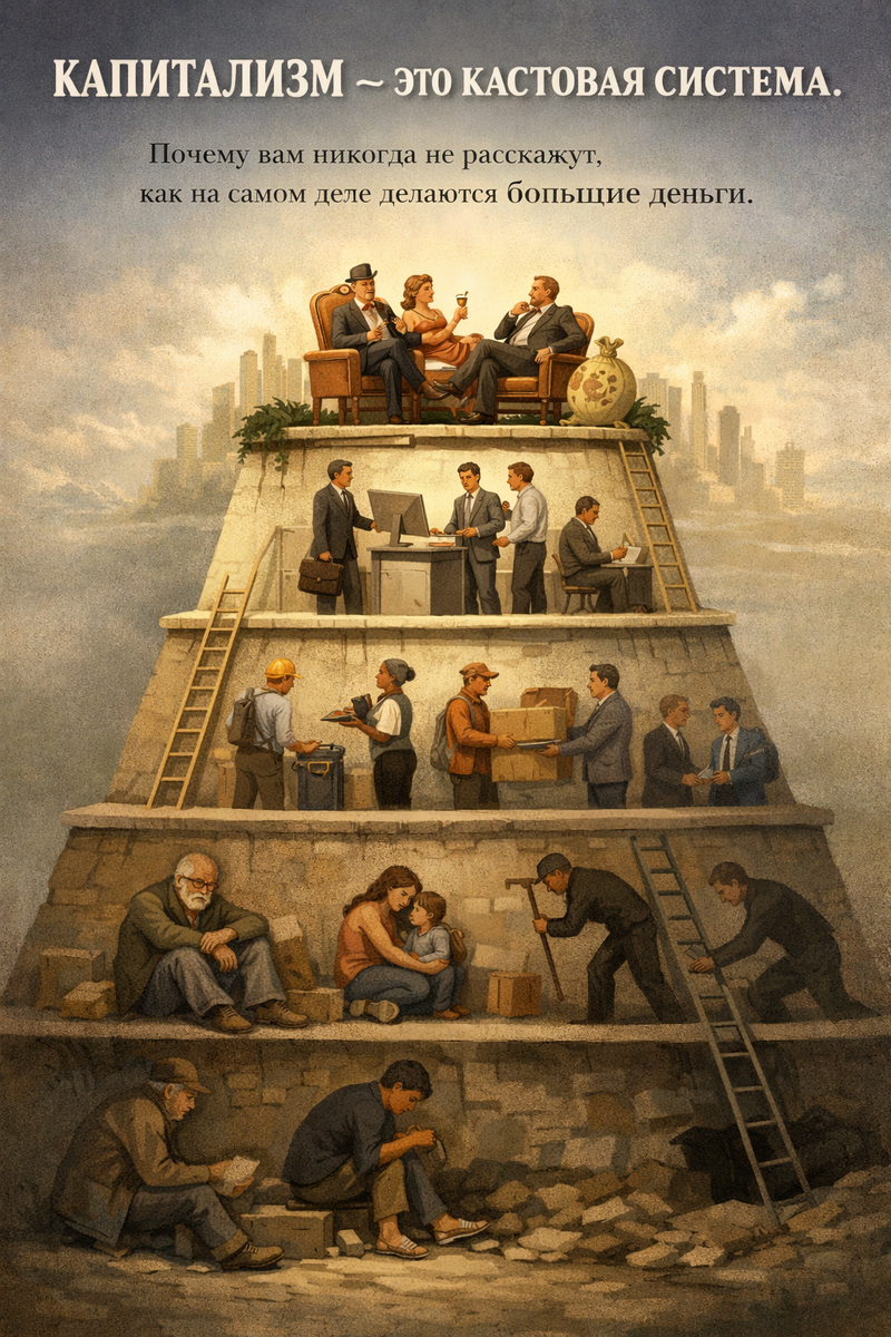 Мой диагноз, основанный на опыте, суров: мы не живем в обществе равных возможностей. Мы живем в жестком обществе каст, разделенных по уровню доступа к Правде. И этот доступ — не абстракция. Это главный, невидимый ресурс, определяющий всё. Вы ищете в Яндексе «как разбогатеть» и тонете в схемах инфоцыган, статьях о «психологии успеха» и историях «с нуля до миллиона». Это не случайность. Это — дизайн системы. Слабым, нижним кастам, оставляют иллюзии движения. Им продают билеты на спектакль под названием «Самопомощь», чтобы они не увидели, как на самом деле открывается занавес.