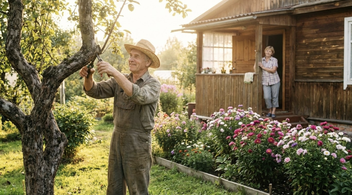 Виктор так никогда не умел. Он любил сад, но руки у него были инженерные — привыкли к чертежам, а не к земле. Сажал криво, поливал слишком много, путал сорняки с рассадой. Зинаида смеялась над ним, а он не обижался. Говорил: «Ты у меня главный агроном, а я — подсобный рабочий».