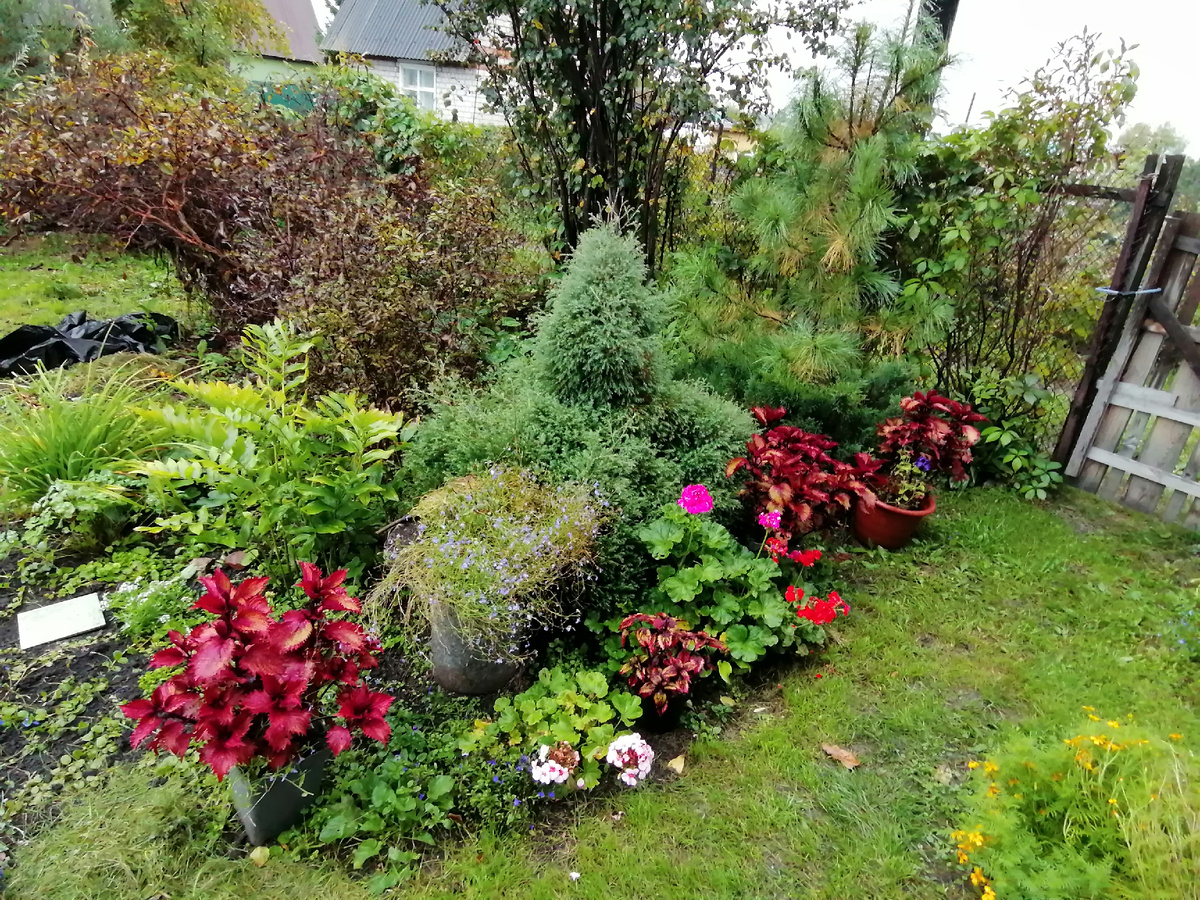 Август: гелениум, флокс метельчатый, хоста, рудбекия, эхинацея, посконник, гладиолусы, лилии, георгины, хризантемы.